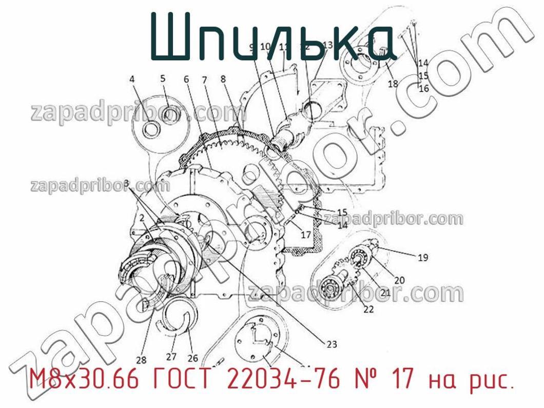 Компания со своей стороны гарантирует отсутствие каких-либо дефектов, несовершенств или неточностей у комплектации и документации шпильки. М8х30.66 ГОСТ 22034-76 можно заказать, связавшись с нашим отделом продаж. Наши менеджеры всегда радостно предоставят вам всю информацию о товаре, его наличии, цене и т.д. Для этого позвоните по указанным телефонам или оставьте заявку через форму обратной связи. Шпилька М8х30.66 ГОСТ 22034-76, номер 17 на чертеже, Редуктор (часть 3) ТЭМ2.85.10.004 и другие запасные части для , а также другие шпильки и похожие изделия представлены на сайте zapadpribor.com.