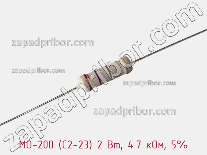 Основные характеристики резистора металлооксидного MO-200 (С2-23) 2 Вт, 4.7 кОм, 5% : MO-200 (С2-23) 2 Вт, 4.7 кОм, 5%, Резистор металлооксидный. Металлооксидные (металлодиэлектрические) постоянные резисторы являются аналогами отечественной серии сопротивлений С2-23. Предназначены для работы в цепях постоянного, переменного и импульсного тока. Металлоксидные пленочные резисторы (metal oxide film resistors) отличает:; высокая надежность и стабильность; широкий температурный диапазон; низкий уровень шумов; огнеупорное покрытие (для мощностей выше 0.5 Вт); цветная кодировка номинала; луженые выводы.