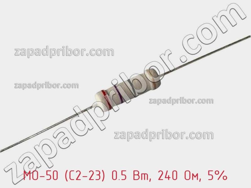 Основные характеристики резистора металлооксидного MO-50 (С2-23) 0.5 Вт, 240 Ом, 5% : MO-50 (С2-23) 0.5 Вт, 240 Ом, 5%, Резистор металлооксидный. Металлооксидные (металлодиэлектрические) постоянные резисторы являются аналогами отечественной серии сопротивлений С2-23. Предназначены для работы в цепях постоянного, переменного и импульсного тока. Металлоксидные пленочные резисторы (metal oxide film resistors) отличает:; высокая надежность и стабильность; широкий температурный диапазон; низкий уровень шумов; огнеупорное покрытие (для мощностей выше 0.5 Вт); цветная кодировка номинала; луженые выводы.