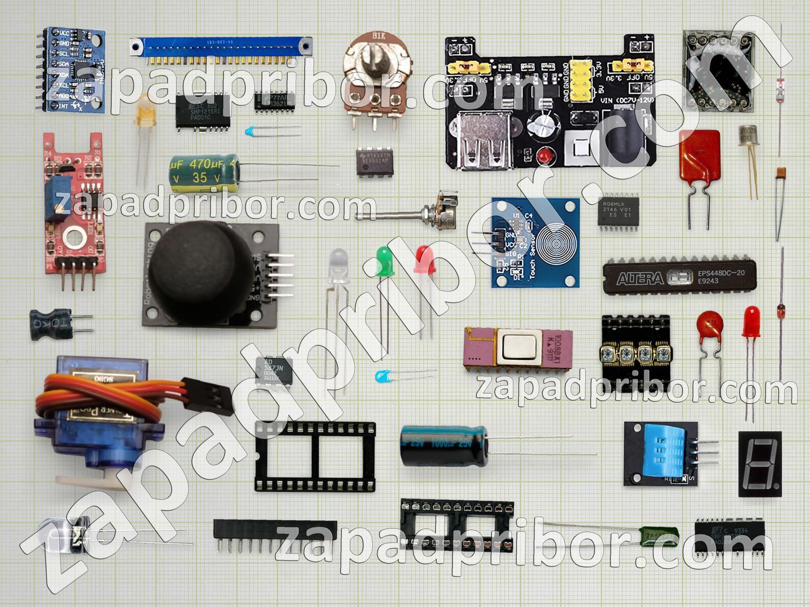 Кроме этих радиодеталей на нашем сайте вы сможете найти большой перечень компонентов. Осуществляйте поиск по основным типам радиодеталей таких как трансформатор, тумблер, диод, резистор, преобразователь, дисплей, диодный мост, резонатор, колодки, контакты, светодиод, соединитель, индикатор, фотодиод, датчик, транзистор, микросхема, кнопка, экран, тиристор, дроссель, индуктивность, адаптер, реле, переключатель, разъем, конденсатор, усилитель и другие.