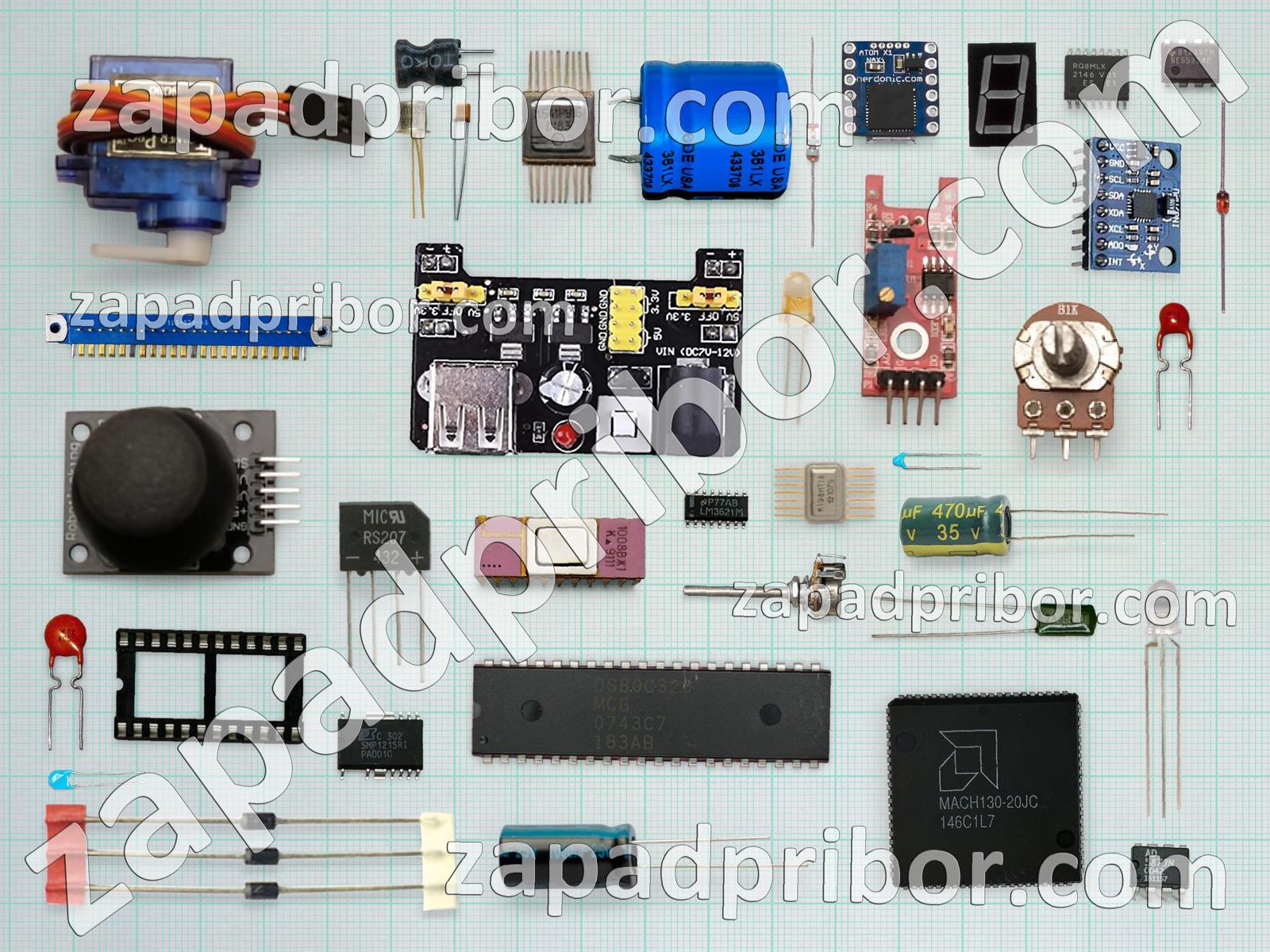 Кроме этих радиодеталей на нашем сайте вы сможете найти большой перечень компонентов. Осуществляйте поиск по основным типам радиодеталей таких как колодки, фотодиод, индикатор, светодиод, конденсатор, разъем, транзистор, кнопка, индуктивность, переключатель, тиристор, адаптер, контакты, резистор, реле, диодный мост, тумблер, преобразователь, экран, дроссель, микросхема, соединитель, резонатор, диод, дисплей, трансформатор, датчик, усилитель и другие.