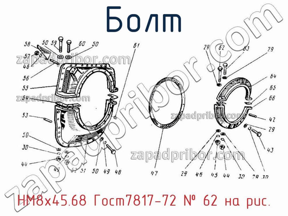 Наш отдел технического контроля гарантирует отсутствие брака или других несоответствий в технической документации или комплектации всех болтов представленных на нашем сайте. Чтобы заказать НМ8х45.68 Гост7817-72 обращайтесь в отдел продаж. Чтобы узнать цену, наличие, сроки поставки, срок гарантии и другие вопросы позвоните по телефонам указанным в контактах или оставьте заявку через форму обратной связи. Болт, номер 62 на чертеже, Привод уравновешивания 3-6Д49.10спч-03 ч. 2 и другие запасные части для 49 (Ч 26/26) , а также другие болты и похожие изделия представлены на сайте zapadpribor.com.