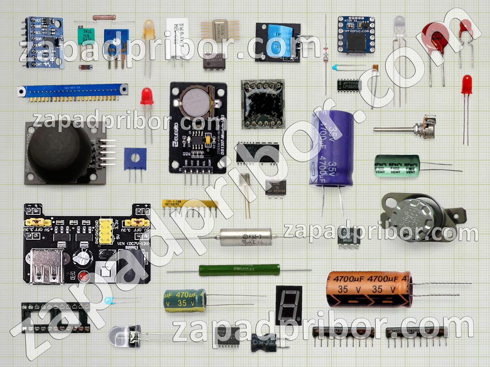 Кроме этих радиодеталей на нашем сайте вы сможете найти большой перечень компонентов. Осуществляйте поиск по основным типам радиодеталей таких как индуктивность, транзистор, усилитель, резонатор, диод, контакты, резистор, реле, тиристор, датчик, соединитель, кнопка, тумблер, конденсатор, трансформатор, светодиод, переключатель, дроссель, экран, адаптер, микросхема, разъем, фотодиод, диодный мост, колодки, преобразователь, индикатор, дисплей и другие.