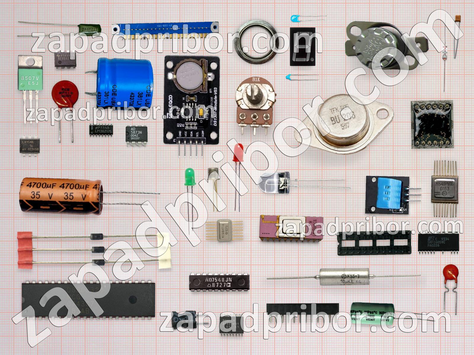 Кроме этих радиодеталей на нашем сайте вы сможете найти большой перечень компонентов. Осуществляйте поиск по основным типам радиодеталей таких как адаптер, соединитель, контакты, резонатор, диод, дисплей, диодный мост, дроссель, микросхема, тумблер, резистор, конденсатор, кнопка, транзистор, реле, тиристор, разъем, индуктивность, трансформатор, колодки, переключатель, датчик, усилитель, фотодиод, экран, светодиод, преобразователь, индикатор и другие.