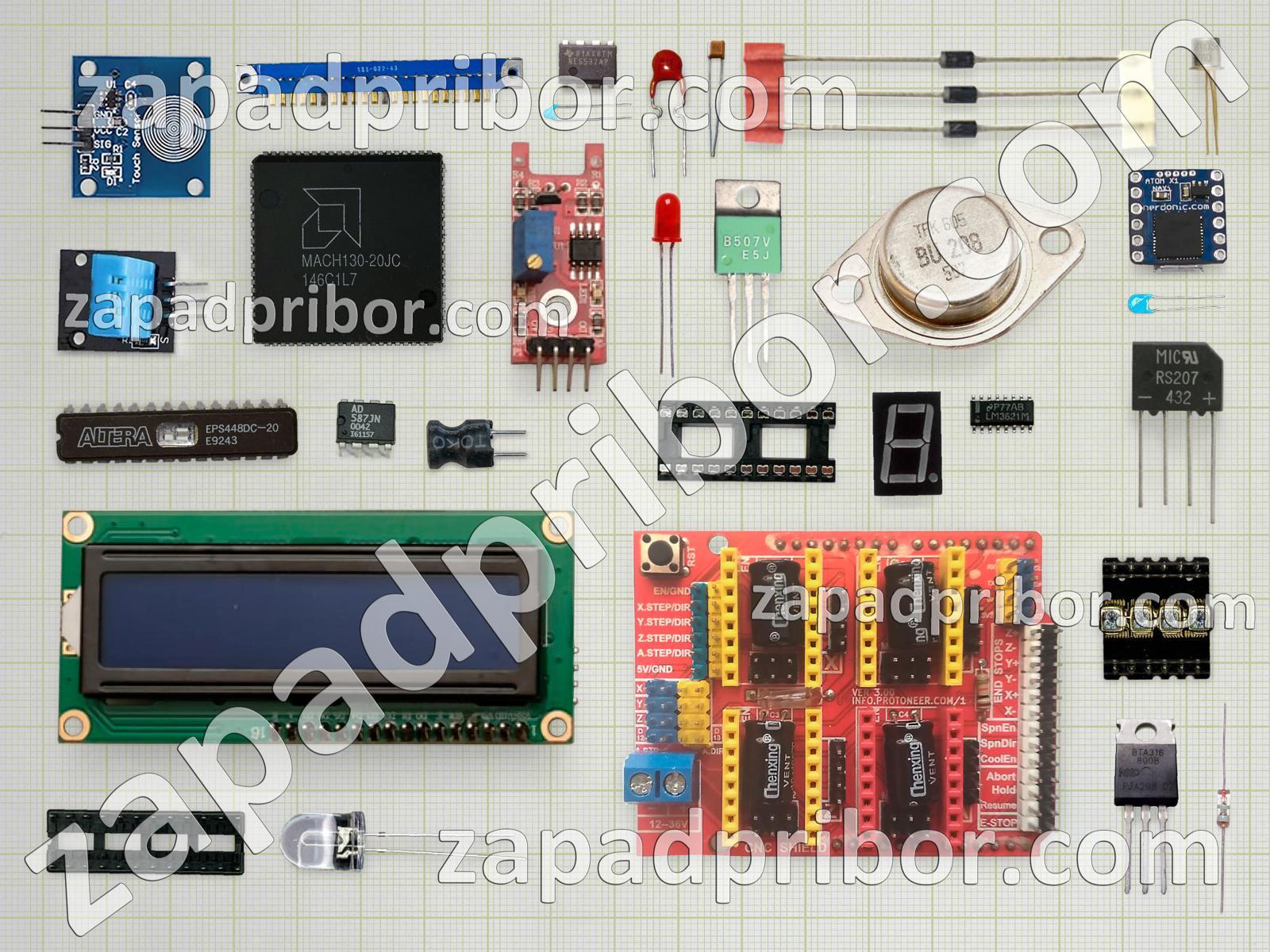 Кроме этих радиодеталей на нашем сайте вы сможете найти большой перечень компонентов. Осуществляйте поиск по основным типам радиодеталей таких как преобразователь, усилитель, диодный мост, резистор, реле, диод, тумблер, адаптер, транзистор, конденсатор, индикатор, разъем, дисплей, светодиод, соединитель, экран, кнопка, дроссель, колодки, контакты, датчик, индуктивность, резонатор, тиристор, фотодиод, трансформатор, микросхема, переключатель и другие.