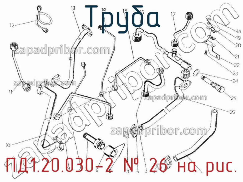 Компания со своей стороны гарантирует отсутствие каких-либо дефектов, несовершенств или неточностей у комплектации и документации трубы. ПД1.20.030-2 можно заказать, связавшись с нашим отделом продаж. Наши менеджеры всегда радостно предоставят вам всю информацию о товаре, его наличии, цене и т.д. Для этого позвоните по указанным телефонам или оставьте заявку через форму обратной связи. Труба ПД1.20.030-2, номер 26 на чертеже, Трубопровод масляный Д50.20 и другие запасные части для ПДГ4А) , а также другие трубы и похожие изделия представлены на сайте zapadpribor.com.