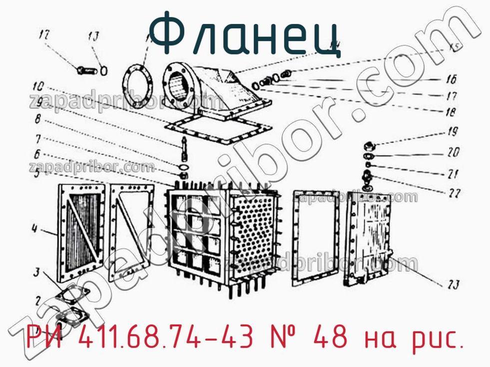 Мы даем гарантию на отсутствие брака или других несоответствий технической документации. Для приобретения РИ 411.68.74-43 обращайтесь в наш отдел продаж. Информацию о цене, наличию, срокам доставки, гарантии и любые другие вопросы уточняйте у наших менеджеров. Фланец, номер 2 на чертеже, Охладитель наддувочного возд. 6Д49.168спч-1 и другие запасные части для 49 (Ч 26/26) , а также другие фланцы и похожие изделия представлены на сайте zapadpribor.com.