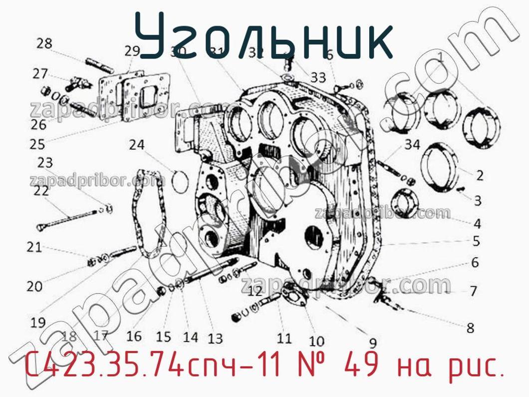 Наш ОТК гарантирует отсутствие брака у всех угольников представленных на нашем сайте. Для заказа С423.35.74спч-11 обращайтесь в отдел продаж. Информация о цене, наличии, сроках поставки, сроке гарантии и по других вопросах обращайтесь по телефонам, указанным в контактах или оставьте заявку через форму обратной связи. Угольник, номер 27 на чертеже, Привод насосов 3А-6Д49.128спч и другие запасные части для 49 (Ч 26/26) , а также другие угольники и похожие изделия представлены на сайте zapadpribor.com.