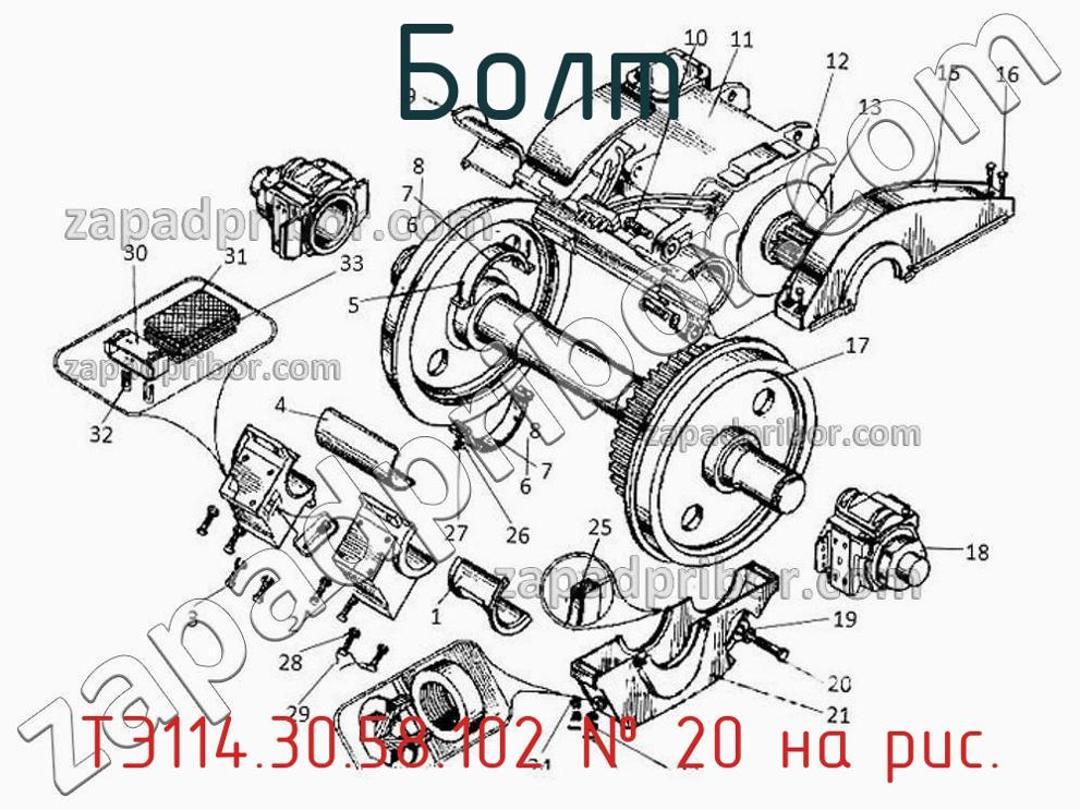 Наш отдел технического контроля в свою очередь гарантирует отсутствие какого-либо брака или других проблем с товаром в технической документации и т.д. Если хотите приобрести ТЭ114.30.58.102 – обратитесь в наш отдел продаж. Интересует цена, наличие товара, гарантийные условия или какая-либо дополнительная информация о товаре - обратитесь за указанным номером телефона. Болт ТЭ114.30.58.102, номер 20 на чертеже, Колесно-моторный блок ТЭМ2.35.10.000 и другие запасные части для , а также другие болты и похожие изделия представлены на сайте zapadpribor.com.
