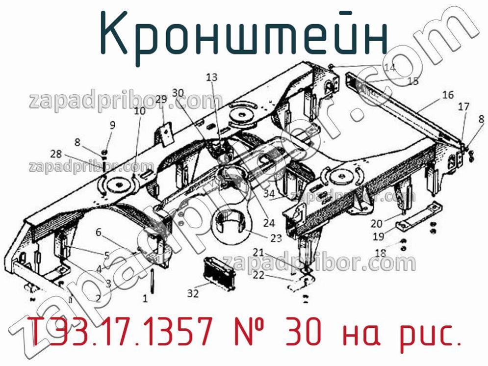 Мы даем гарантию на отсутствие брака или других несоответствий технической документации. Для приобретения ТЭ3.17.1357 обращайтесь в наш отдел продаж. Информацию о цене, наличию, срокам доставки, гарантии и любые другие вопросы уточняйте у наших менеджеров. Кронштейн ТЭ3.17.1357, номер 30 на чертеже, Рама тележки ТЭМ2 и другие запасные части для , а также другие кронштейны и похожие изделия представлены на сайте zapadpribor.com.