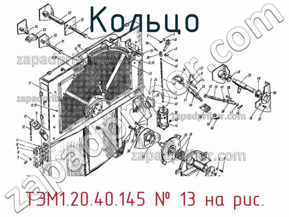Компания со своей стороны гарантирует отсутствие каких-либо дефектов, несовершенств или неточностей у комплектации и документации кольца. ТЭМ1.20.40.145 можно заказать, связавшись с нашим отделом продаж. Наши менеджеры всегда радостно предоставят вам всю информацию о товаре, его наличии, цене и т.д. Для этого позвоните по указанным телефонам или оставьте заявку через форму обратной связи. Кольцо ТЭМ1.20.40.145, номер 13 на чертеже, Воздухоочиститель ТЭМ2.01.12.002 и другие запасные части для , а также другие кольца и похожие изделия представлены на сайте zapadpribor.com.