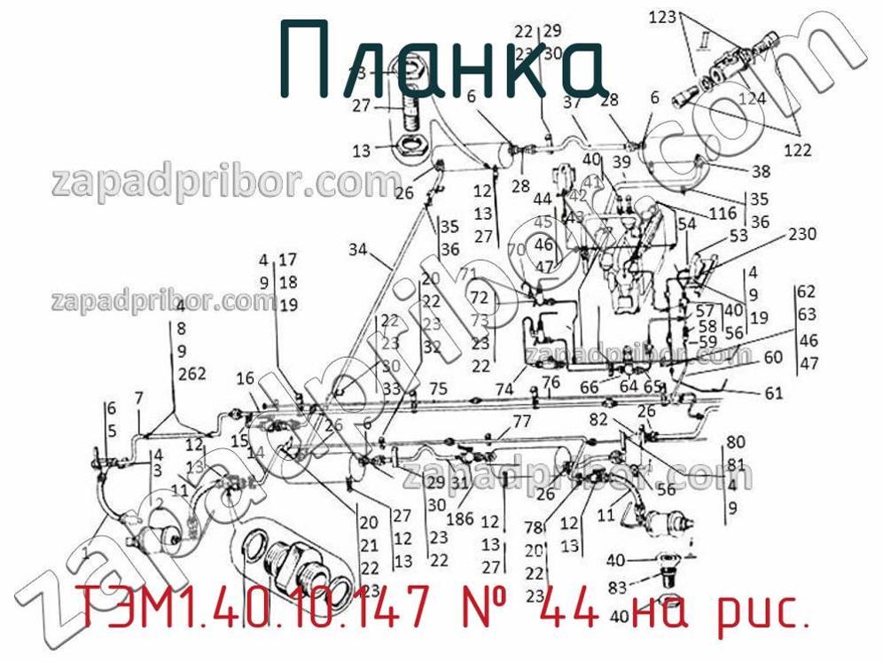 ОТК компании гарантирует отсутствие брака у всех планок представленных на нашем сайте. Для покупки ТЭМ1.40.10.147 обратитесь в отдел продаж. Относительно информации о цене, наличии, сроках поставки, гарантии обращайтесь по телефонам, указанным в контактах или оставьте запрос через форму обратной связи. Планка ТЭМ1.40.10.147, номер 44 на чертеже, Воздухопровод тормоза (часть 1) и другие запасные части для , а также другие планки и похожие изделия представлены на сайте zapadpribor.com.