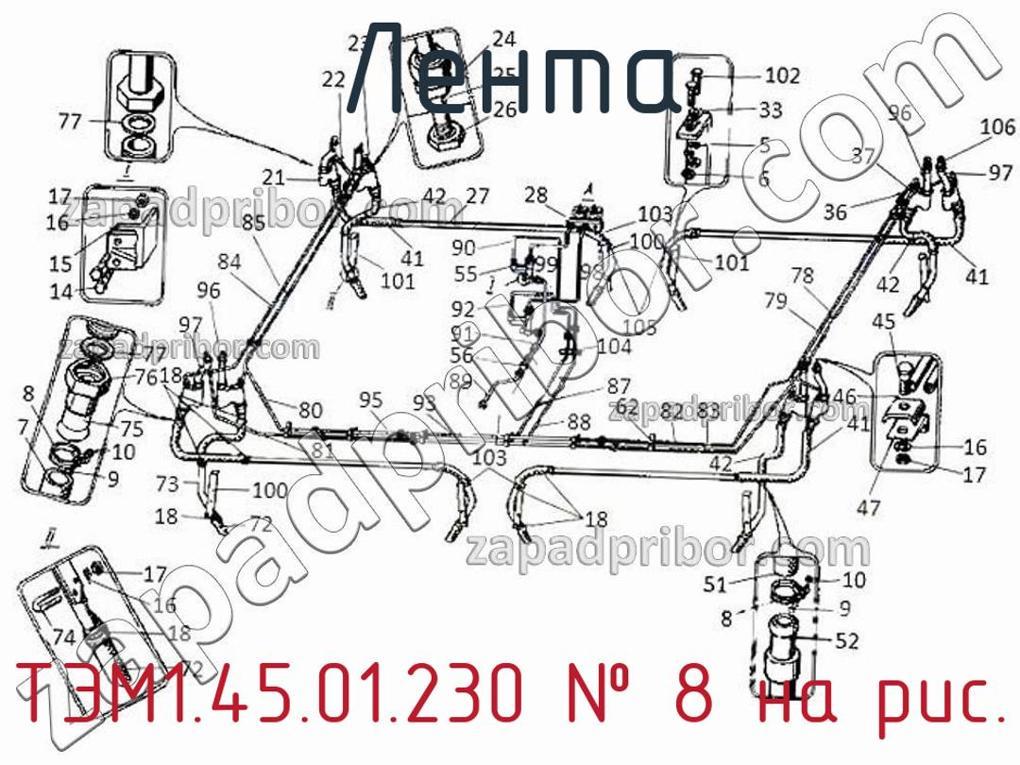 Мы даем гарантию на отсутствие брака или других несоответствий технической документации. Для приобретения ТЭМ1.45.01.230 обращайтесь в наш отдел продаж. Информацию о цене, наличию, срокам доставки, гарантии и любые другие вопросы уточняйте у наших менеджеров. Лента ТЭМ1.45.01.230, номер 8 на чертеже, Трубопровод песочной системы ТЭМ2.35.04.000 и другие запасные части для , а также другие ленты и похожие изделия представлены на сайте zapadpribor.com.