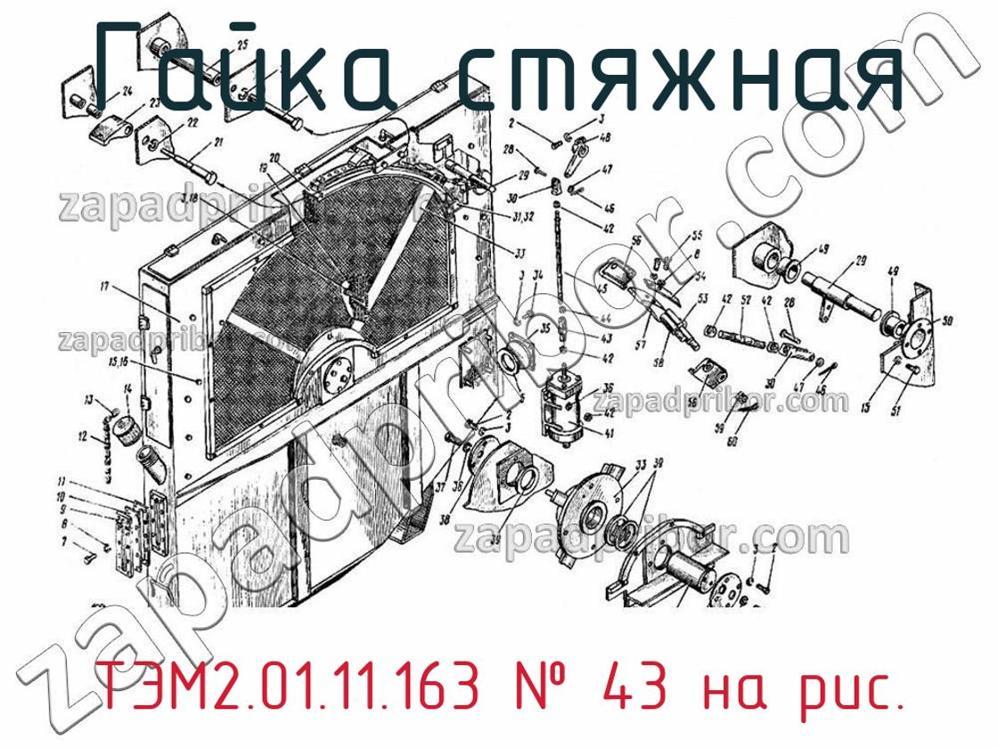 Мы даем гарантию на отсутствие брака или других несоответствий технической документации у всех гаек стяжных. Для приобритения ТЭМ2.01.11.163 - обратитесь в наш отдел продаж. Чтобы получить более подробную информацию о товаре, его доставке или у вас есть любой другой вопрос - позвоните нам и мы поможем вам окончательно определиться по поводу приобретения этого товара. Гайка стяжная ТЭМ2.01.11.163, номер 43 на чертеже, Воздухоочиститель ТЭМ2.01.12.002 и другие запасные части для , а также другие гайки стяжные и похожие изделия представлены на сайте zapadpribor.com.
