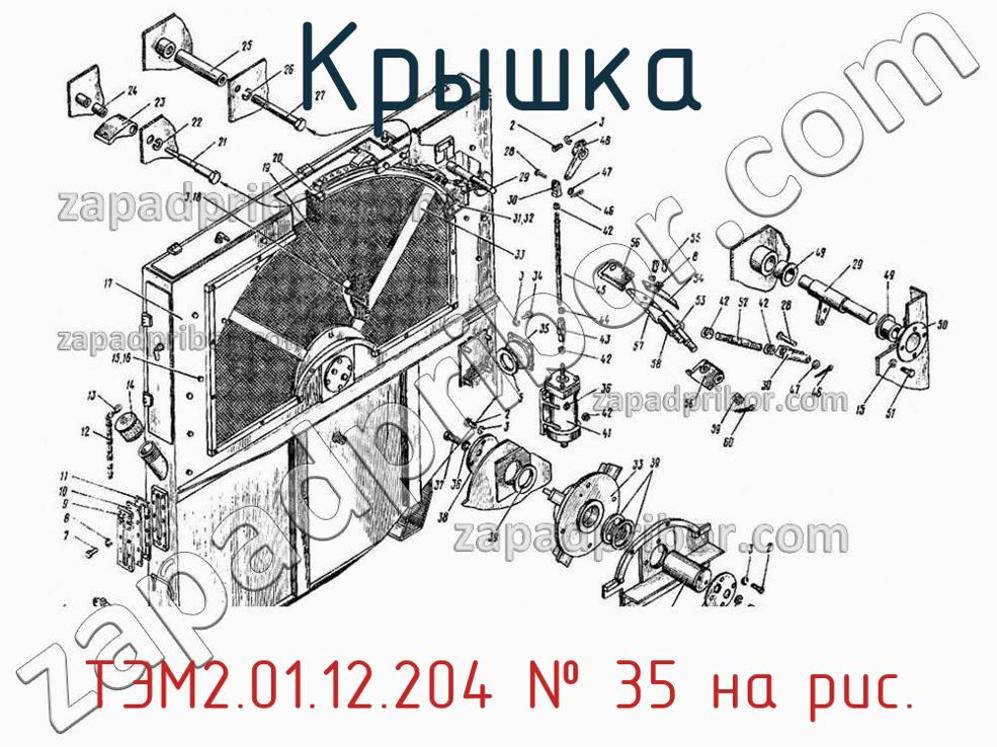 Мы даем гарантию на отсутствие брака или других несоответствий технической документации. По вопросам приобретения ТЭМ2.01.12.204 обращайтесь в отдел продаж. Наши менеджеры предоставят всю интересующую Вас информацию по поводу цены, наличия, сроков доставки, гарантии или ответят на любые другие вопросы. Крышка ТЭМ2.01.12.204, номер 35 на чертеже, Воздухоочиститель ТЭМ2.01.12.002 и другие запасные части для , а также другие крышки и похожие изделия представлены на сайте zapadpribor.com.