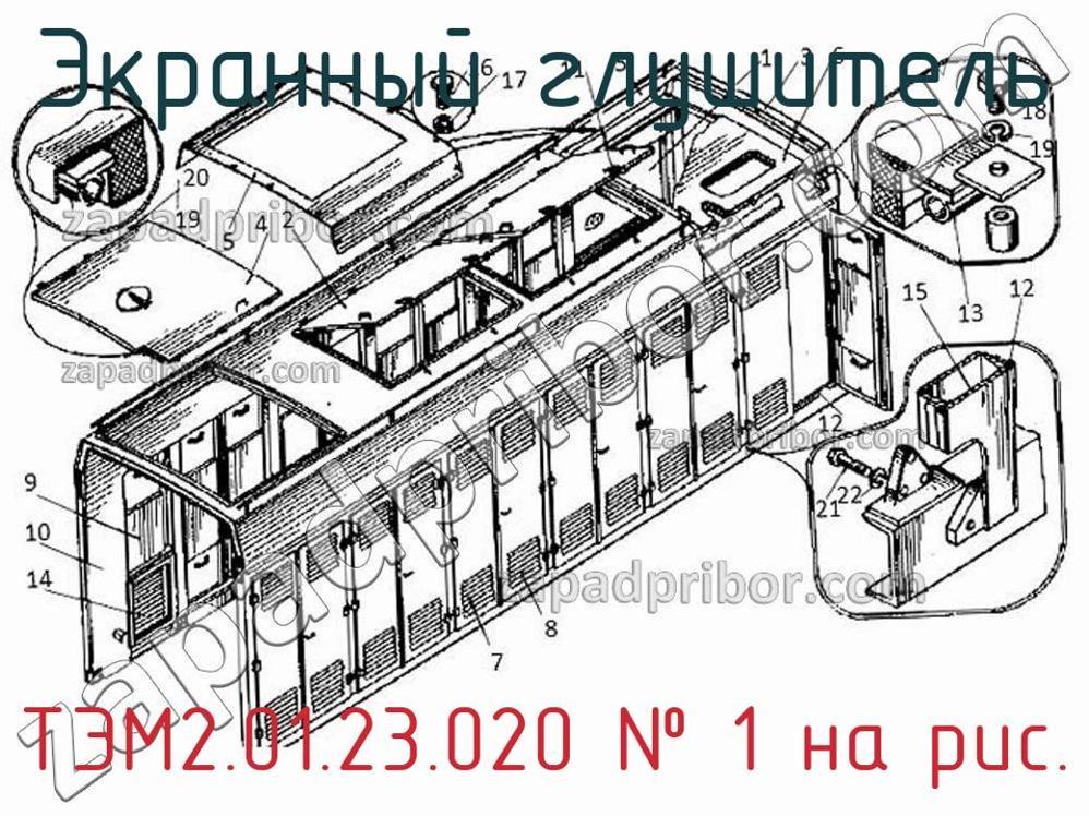 Наш ОТК гарантирует отсутствие брака у всех экранных глушителей представленных на нашем сайте. Для заказа ТЭМ2.01.23.020 обращайтесь в отдел продаж. Информация о цене, наличии, сроках поставки, сроке гарантии и по других вопросах обращайтесь по телефонам, указанным в контактах или оставьте заявку через форму обратной связи. Экранный глушитель шума на всасе дизеля ТЭМ2.01.23.020, номер 1 на чертеже, Кузов над дизель-генератором ТЭМ2Т.55.01.000 и другие запасные части для , а также другие экранные глушители и похожие изделия представлены на сайте zapadpribor.com.