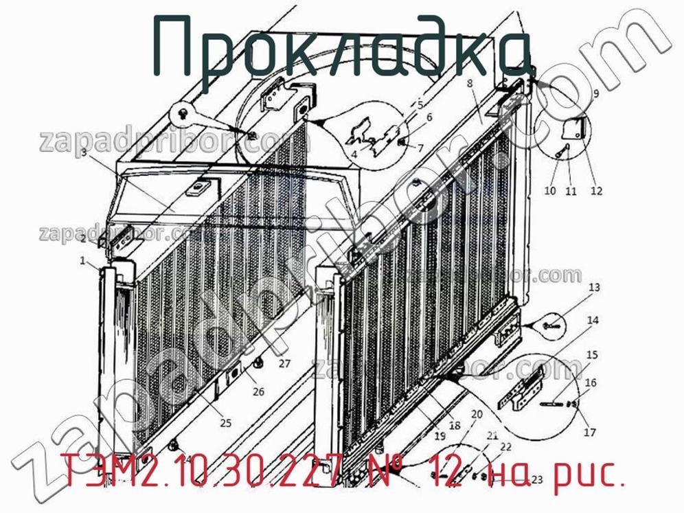 Мы даем гарантию на отсутствие брака или других несоответствий технической документации. Для приобретения ТЭМ2.10.30.227 обращайтесь в наш отдел продаж. Информацию о цене, наличию, срокам доставки, гарантии и любые другие вопросы уточняйте у наших менеджеров. Прокладка ТЭМ2.10.30.227, номер 12 на чертеже, Установка охлаждающих секций и коллекторов ТЭМ2.10.30.002 и другие запасные части для , а также другие прокладки и похожие изделия представлены на сайте zapadpribor.com.