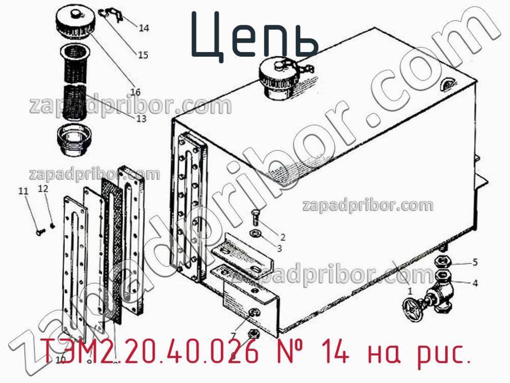 ОТК компании гарантирует отсутствие брака у всех цепей представленных на нашем сайте. Для покупки ТЭМ2.20.40.026 обратитесь в отдел продаж. Относительно информации о цене, наличии, сроках поставки, гарантии обращайтесь по телефонам, указанным в контактах или оставьте запрос через форму обратной связи. Цепь ТЭМ2.20.40.026, номер 14 на чертеже, Установка бака для масла ТЭМ2 и другие запасные части для , а также другие цепи и похожие изделия представлены на сайте zapadpribor.com.