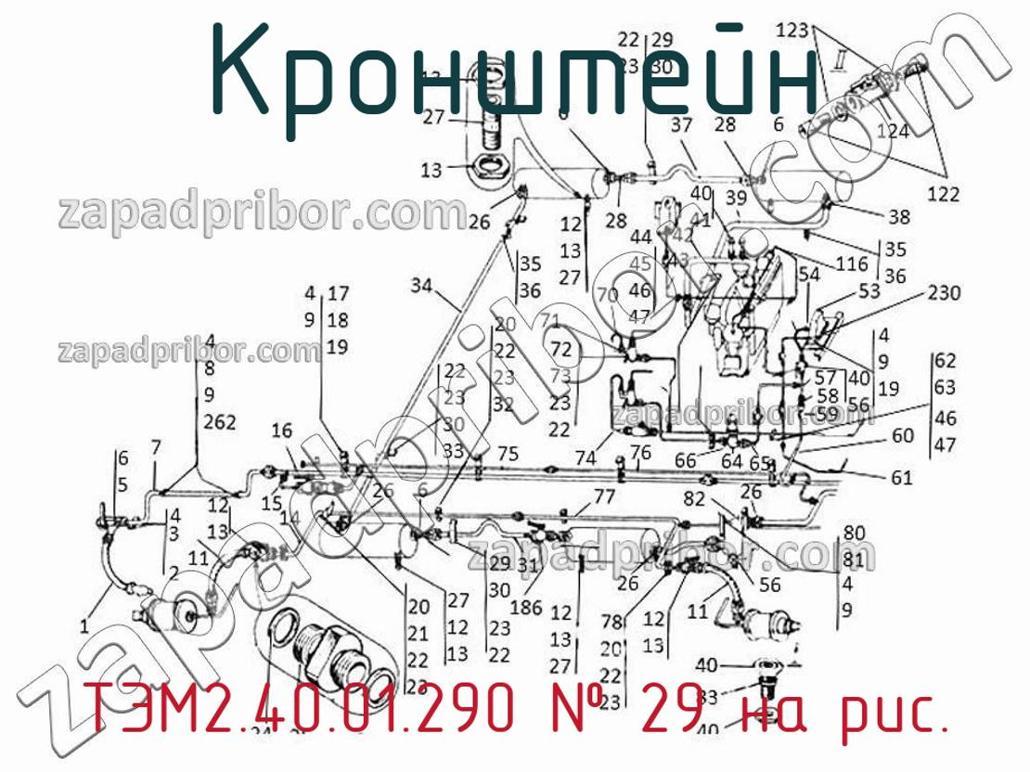Наш отдел технического контроля гарантирует отсутствие брака и других несоответствий технической документации у всех кронштейнов представленных на нашем сайте. По вопросам покупки ТЭМ2.40.01.290 обращайтесь в отдел продаж. Для информации о цене, наличии, сроках поставки, сроке гарантии и по других вопросах обращайтесь по телефонам, указанным в контактах или оставьте запрос через форму обратной связи. Кронштейн ТЭМ2.40.01.290, номер 29 на чертеже, Воздухопровод тормоза (часть 1) и другие запасные части для , а также другие кронштейны и похожие изделия представлены на сайте zapadpribor.com.
