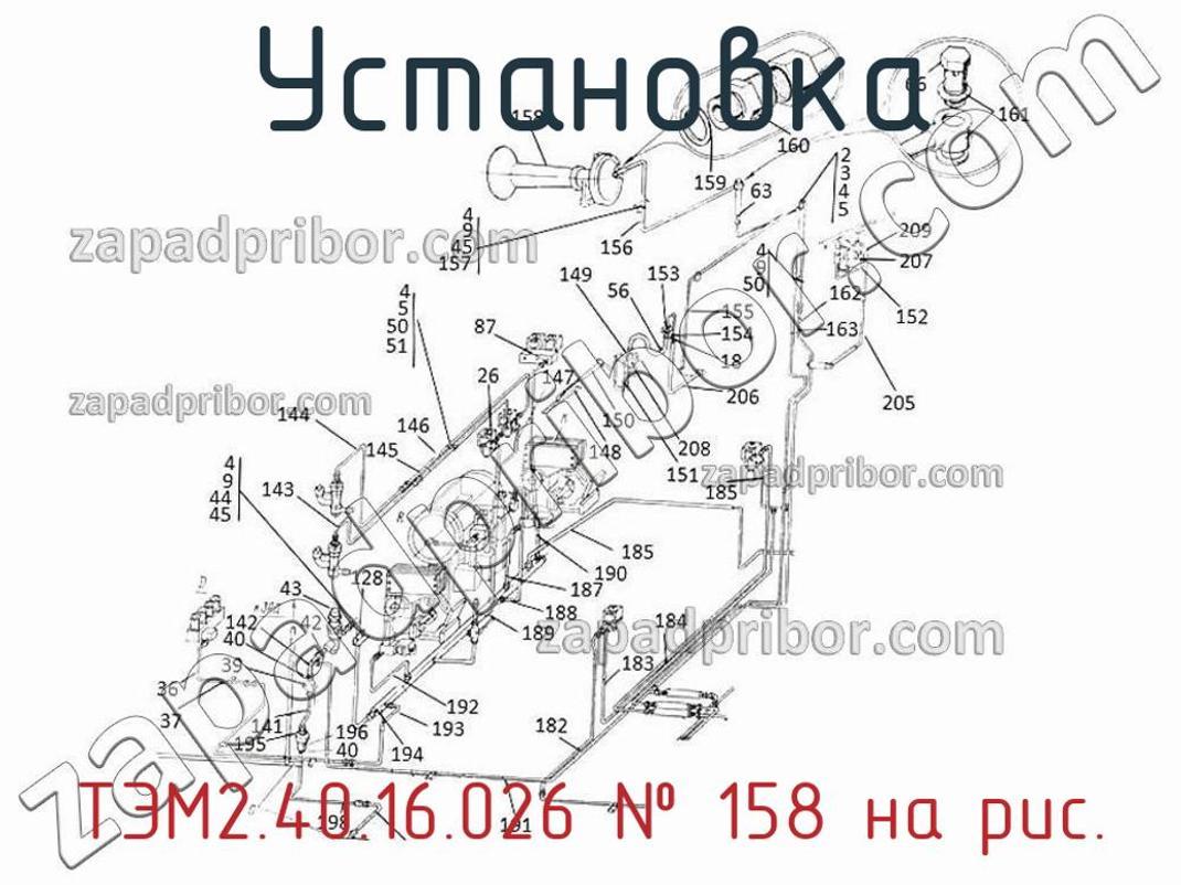 Наш отдел технического контроля гарантирует отсутствие брака и других несоответствий технической документации у всех установок представленных на нашем сайте. Для заказа ТЭМ2.40.16.026 обращайтесь в наш отдел продаж. Для получения более подробной информации о товаре, его доставке или у вас есть любой другой вопрос - позвоните нам и мы поможем вам окончательно определиться по поводу приобретения этого товара. Установка тифона ТЭМ2.40.16.026, номер 158 на чертеже, Трубопровод автоматики часть 2 ТЭМ2Т.40.12.000 и другие запасные части для , а также другие установки и похожие изделия представлены на сайте zapadpribor.com.