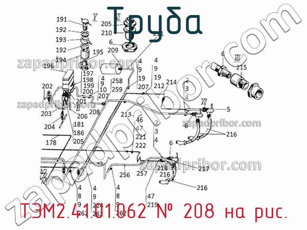 Наш отдел технического контроля гарантирует отсутствие брака или других несоответствий в технической документации или комплектации всех труб представленных на нашем сайте. Чтобы заказать ТЭМ2.41.01.062 обращайтесь в отдел продаж. Чтобы узнать цену, наличие, сроки поставки, срок гарантии и другие вопросы позвоните по телефонам указанным в контактах или оставьте заявку через форму обратной связи. Труба ТЭМ2.41.01.062, номер 208 на чертеже, Воздухопровод тормоза (часть 3) и другие запасные части для , а также другие трубы и похожие изделия представлены на сайте zapadpribor.com.