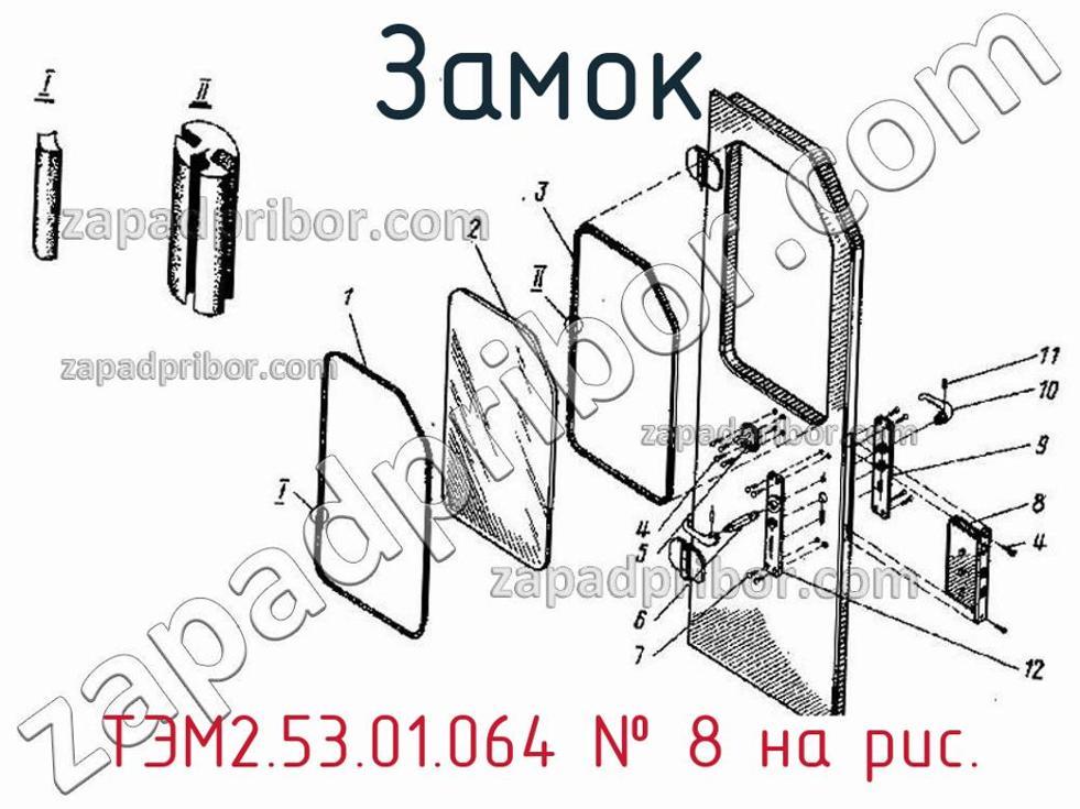 Компания со своей стороны гарантирует отсутствие каких-либо дефектов, несовершенств или неточностей у комплектации и документации замка. ТЭМ2.53.01.064 можно заказать, связавшись с нашим отделом продаж. Наши менеджеры всегда радостно предоставят вам всю информацию о товаре, его наличии, цене и т.д. Для этого позвоните по указанным телефонам или оставьте заявку через форму обратной связи. Замок ТЭМ2.53.01.064, номер 8 на чертеже, Дверь кабины машиниста ТЭМ2Т.54.01.030 и другие запасные части для , а также другие замки и похожие изделия представлены на сайте zapadpribor.com.