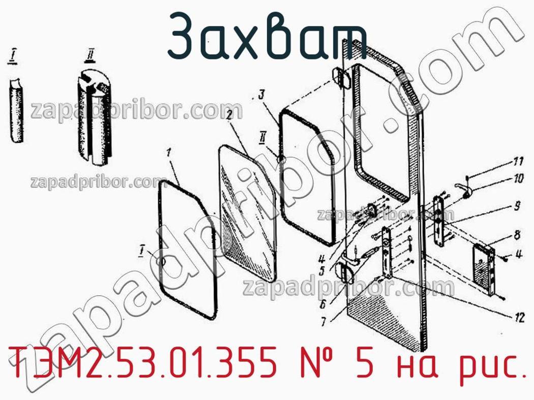 Мы даем гарантию на отсутствие брака или других несоответствий технической документации. По вопросам приобретения ТЭМ2.53.01.355 обращайтесь в отдел продаж. Наши менеджеры предоставят всю интересующую Вас информацию по поводу цены, наличия, сроков доставки, гарантии или ответят на любые другие вопросы. Захват ТЭМ2.53.01.355, номер 5 на чертеже, Дверь кабины машиниста ТЭМ2Т.54.01.030 и другие запасные части для , а также другие захваты и похожие изделия представлены на сайте zapadpribor.com.