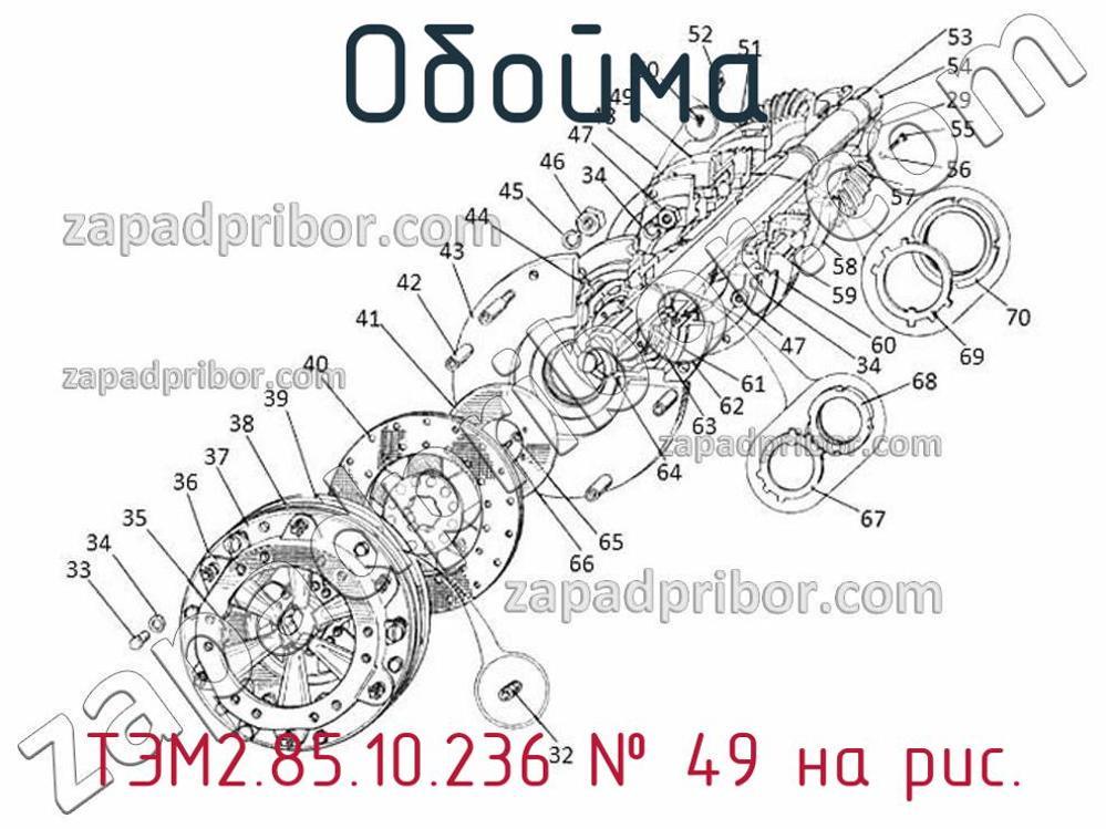 Мы даем гарантию на отсутствие брака или других несоответствий технической документации. По вопросам приобретения ТЭМ2.85.10.236 обращайтесь в отдел продаж. Наши менеджеры предоставят всю интересующую Вас информацию по поводу цены, наличия, сроков доставки, гарантии или ответят на любые другие вопросы. Обойма ТЭМ2.85.10.236, номер 49 на чертеже, Редуктор (часть 1) ТЭМ2.85.10.004 и другие запасные части для , а также другие обоймы и похожие изделия представлены на сайте zapadpribor.com.
