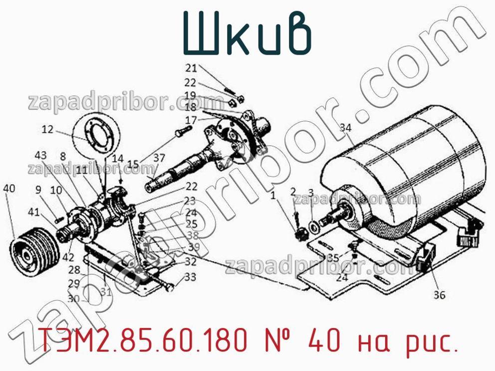 Мы даем гарантию на отсутствие брака или других несоответствий технической документации. Для приобретения ТЭМ2.85.60.180 обращайтесь в наш отдел продаж. Информацию о цене, наличию, срокам доставки, гарантии и любые другие вопросы уточняйте у наших менеджеров. Шкив ТЭМ2.85.60.180, номер 40 на чертеже, Привод 2х машинного агрегата ТЭМ2.85.60.017 и другие запасные части для , а также другие шкивы и похожие изделия представлены на сайте zapadpribor.com.