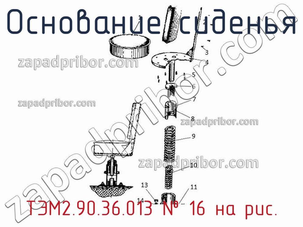 Наш отдел технического контроля гарантирует отсутствие брака или других несоответствий в технической документации или комплектации всех оснований сиденья представленных на нашем сайте. Чтобы заказать ТЭМ2.90.36.013 обращайтесь в отдел продаж. Чтобы узнать цену, наличие, сроки поставки, срок гарантии и другие вопросы позвоните по телефонам указанным в контактах или оставьте заявку через форму обратной связи. Основание сиденья ТЭМ2.90.36.013, номер 16 на чертеже, Сидение машиниста ТЭМ10 и другие запасные части для , а также другие основания сиденья и похожие изделия представлены на сайте zapadpribor.com.