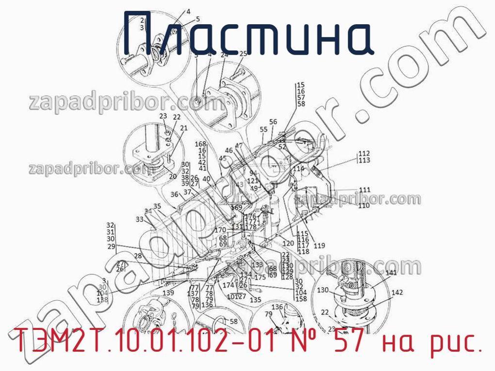 Компания со своей стороны гарантирует отсутствие каких-либо дефектов, несовершенств или неточностей у комплектации и документации пластины. ТЭМ2Т.10.01.102-01 можно заказать, связавшись с нашим отделом продаж. Наши менеджеры всегда радостно предоставят вам всю информацию о товаре, его наличии, цене и т.д. Для этого позвоните по указанным телефонам или оставьте заявку через форму обратной связи. Пластина ТЭМ2Т.10.01.102-01, номер 57 на чертеже, Трубопровод водяной системы часть 1 и другие запасные части для , а также другие пластины и похожие изделия представлены на сайте zapadpribor.com.