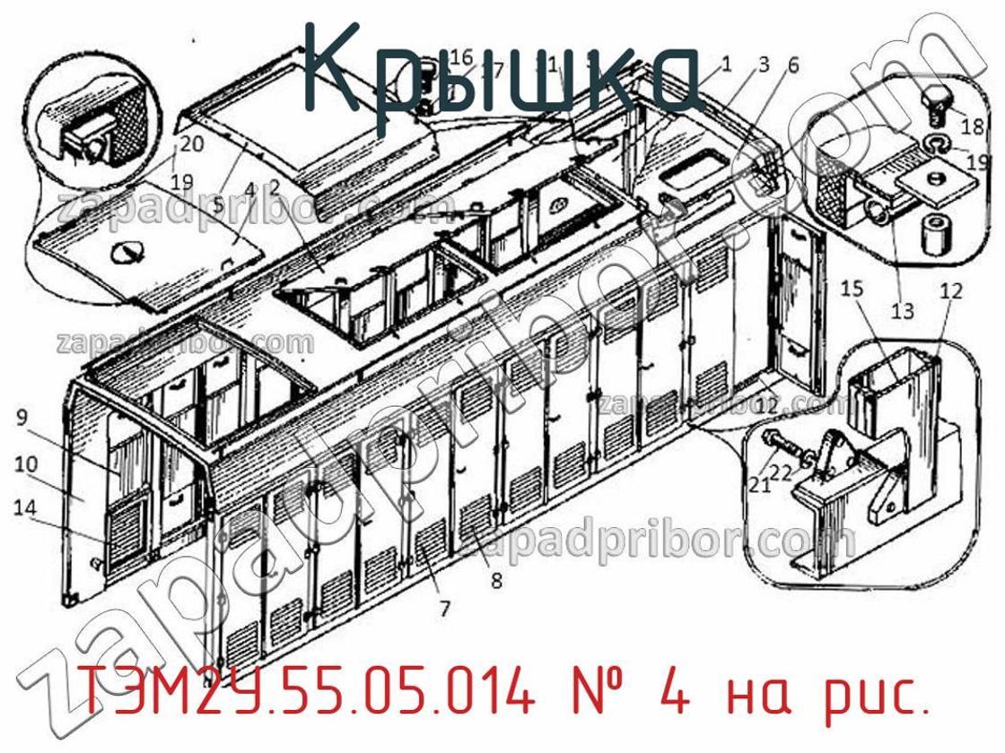 Наш отдел технического контроля гарантирует отсутствие брака и других несоответствий технической документации у всех крышек представленных на нашем сайте. По вопросам покупки ТЭМ2У.55.05.014 обращайтесь в отдел продаж. Для информации о цене, наличии, сроках поставки, сроке гарантии и по других вопросах обращайтесь по телефонам, указанным в контактах или оставьте запрос через форму обратной связи. Крышка люка над водяным баком ТЭМ2У.55.05.014, номер 4 на чертеже, Кузов над дизель-генератором ТЭМ2Т.55.01.000 и другие запасные части для , а также другие крышки и похожие изделия представлены на сайте zapadpribor.com.