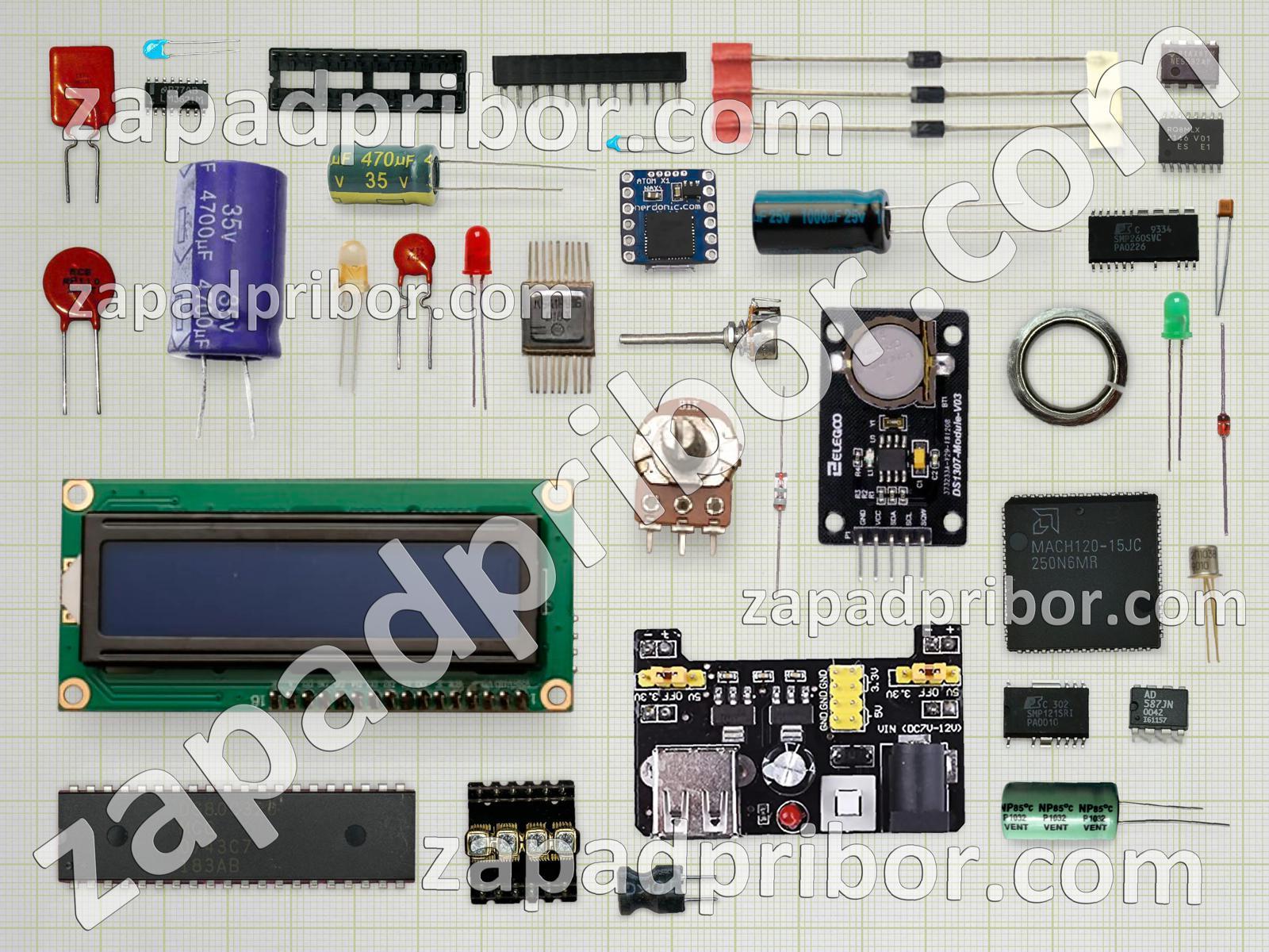 Кроме этих радиодеталей на нашем сайте вы сможете найти большой перечень компонентов. Осуществляйте поиск по основным типам радиодеталей таких как трансформатор, транзистор, соединитель, диодный мост, дроссель, резистор, светодиод, колодки, разъем, преобразователь, фотодиод, резонатор, тиристор, тумблер, дисплей, конденсатор, датчик, усилитель, экран, реле, индикатор, переключатель, диод, кнопка, адаптер, индуктивность, микросхема, контакты и другие.