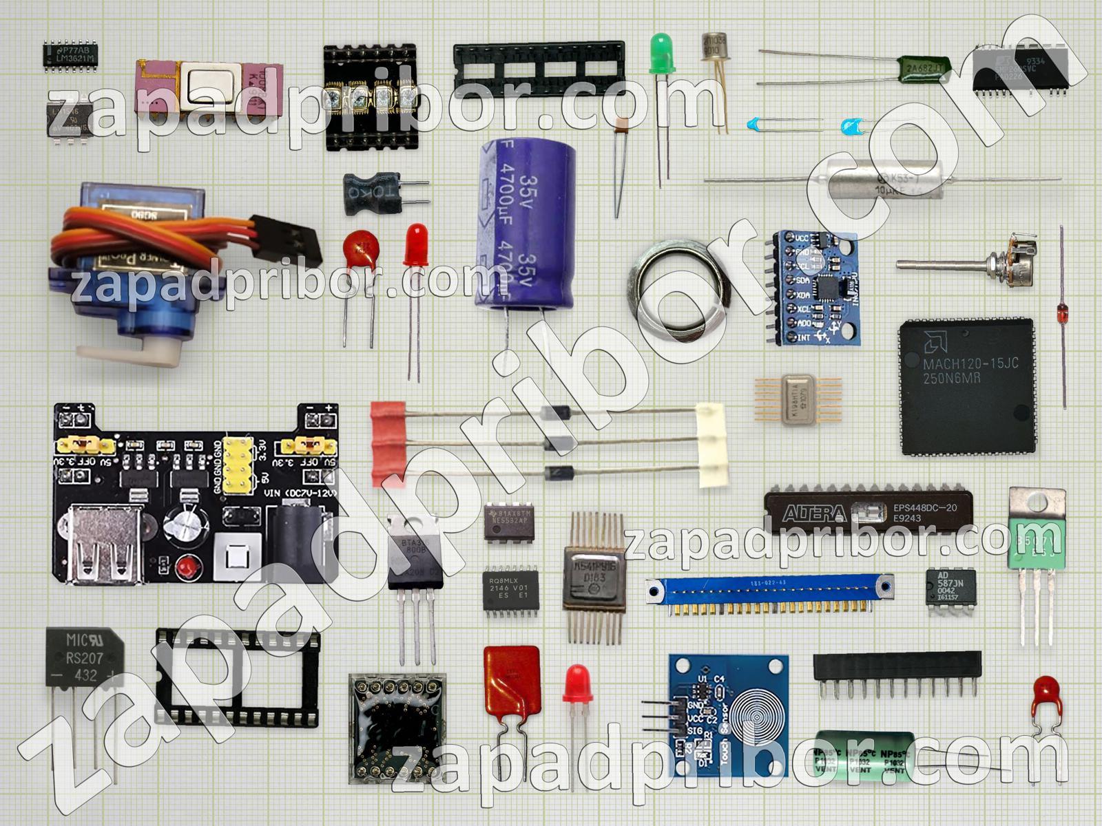Кроме этих радиодеталей на нашем сайте вы сможете найти большой перечень компонентов. Осуществляйте поиск по основным типам радиодеталей таких как диод, усилитель, резонатор, конденсатор, кнопка, реле, индуктивность, дисплей, соединитель, фотодиод, колодки, тиристор, разъем, микросхема, трансформатор, экран, диодный мост, дроссель, светодиод, адаптер, резистор, преобразователь, тумблер, транзистор, контакты, индикатор, датчик, переключатель и другие.