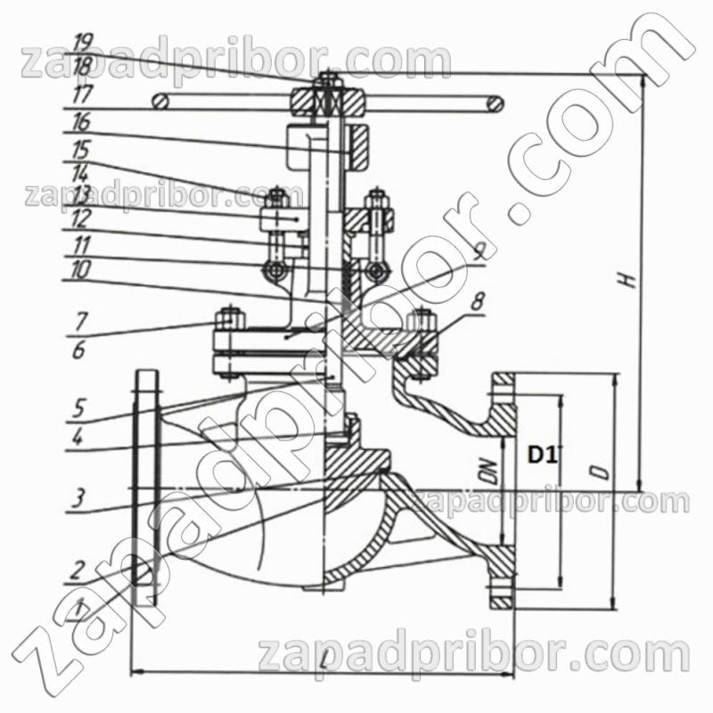 - 1. Корпус и крышка: углеродистая сталь 25Л ГОСТ 977-88
