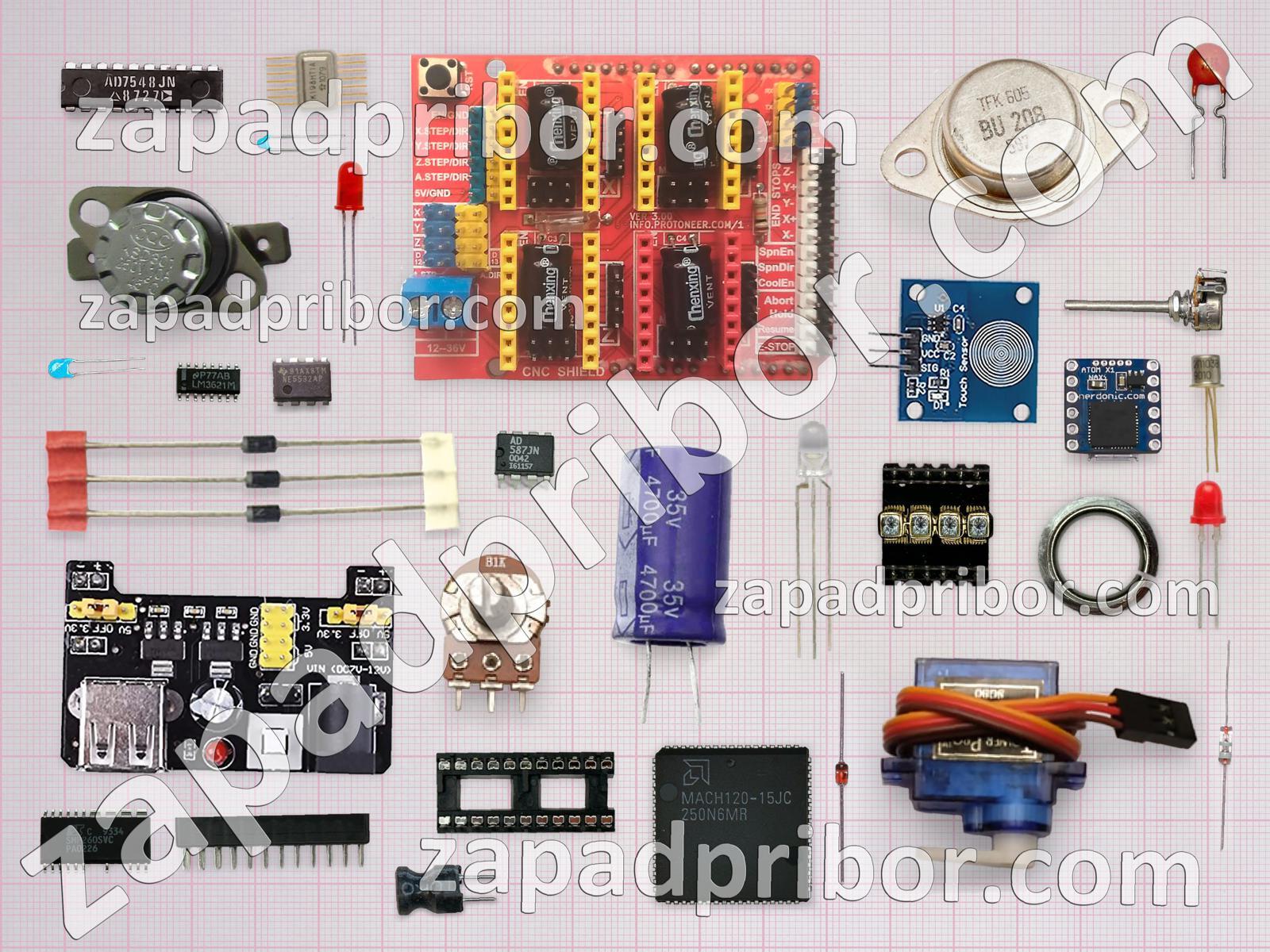 Кроме этих радиодеталей на нашем сайте вы сможете найти большой перечень компонентов. Осуществляйте поиск по основным типам радиодеталей таких как усилитель, соединитель, датчик, контакты, преобразователь, дисплей, фотодиод, диод, транзистор, экран, микросхема, резонатор, колодки, кнопка, тиристор, резистор, трансформатор, реле, разъем, дроссель, индуктивность, индикатор, светодиод, диодный мост, тумблер, конденсатор, адаптер, переключатель и другие.