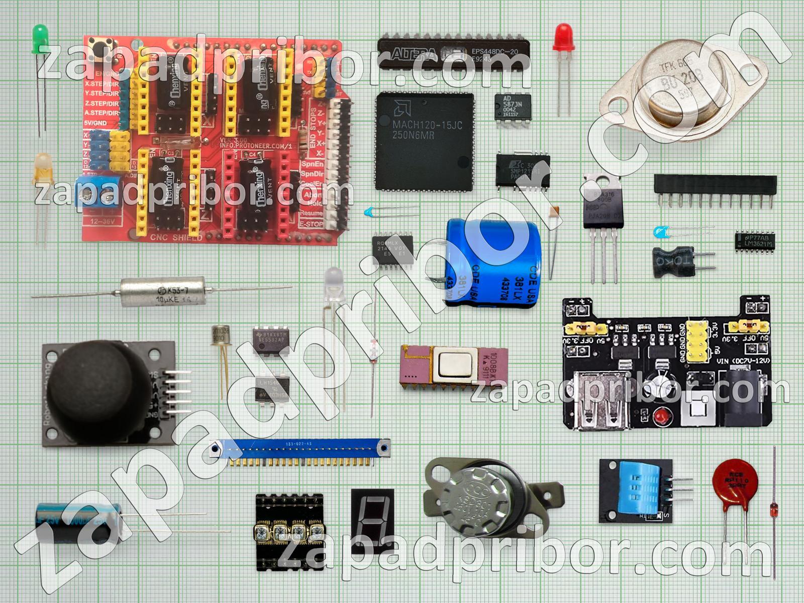 Кроме этих радиодеталей на нашем сайте вы сможете найти большой перечень компонентов. Осуществляйте поиск по основным типам радиодеталей таких как колодки, индикатор, транзистор, датчик, разъем, тумблер, адаптер, дисплей, диодный мост, усилитель, фотодиод, микросхема, реле, кнопка, контакты, индуктивность, соединитель, резистор, светодиод, тиристор, дроссель, преобразователь, переключатель, трансформатор, экран, резонатор, диод, конденсатор и другие.