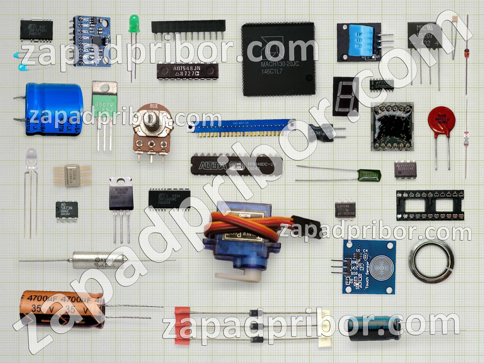 Кроме этих радиодеталей на нашем сайте вы сможете найти большой перечень компонентов. Осуществляйте поиск по основным типам радиодеталей таких как реле, разъем, индуктивность, кнопка, датчик, трансформатор, резонатор, микросхема, дроссель, экран, тиристор, контакты, тумблер, транзистор, преобразователь, адаптер, фотодиод, индикатор, диодный мост, конденсатор, светодиод, колодки, диод, переключатель, усилитель, резистор, дисплей, соединитель и другие.
