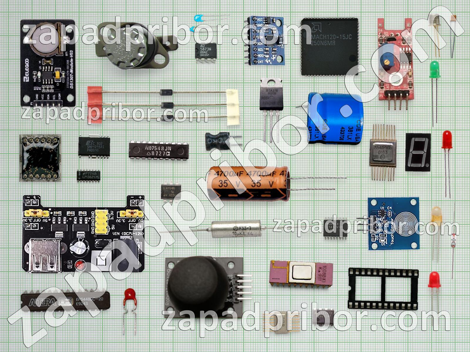 Кроме этих радиодеталей на нашем сайте вы сможете найти большой перечень компонентов. Осуществляйте поиск по основным типам радиодеталей таких как диод, тиристор, конденсатор, резонатор, адаптер, преобразователь, соединитель, дроссель, переключатель, контакты, дисплей, датчик, кнопка, разъем, трансформатор, светодиод, транзистор, индуктивность, диодный мост, тумблер, резистор, микросхема, колодки, фотодиод, индикатор, экран, усилитель, реле и другие.