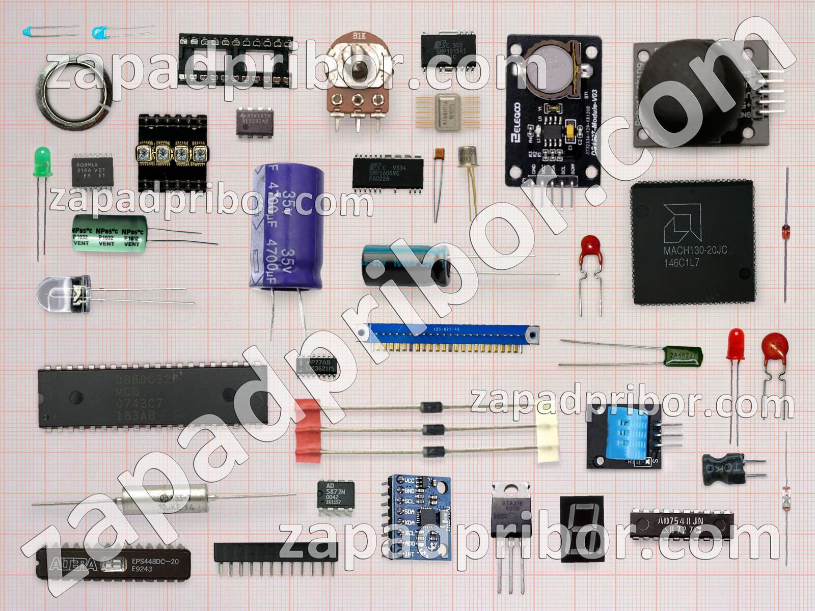 Кроме этих радиодеталей на нашем сайте вы сможете найти большой перечень компонентов. Осуществляйте поиск по основным типам радиодеталей таких как трансформатор, соединитель, дисплей, контакты, адаптер, дроссель, светодиод, микросхема, переключатель, кнопка, разъем, диодный мост, конденсатор, транзистор, реле, индуктивность, датчик, резонатор, резистор, диод, преобразователь, индикатор, тиристор, тумблер, экран, колодки, усилитель, фотодиод и другие.