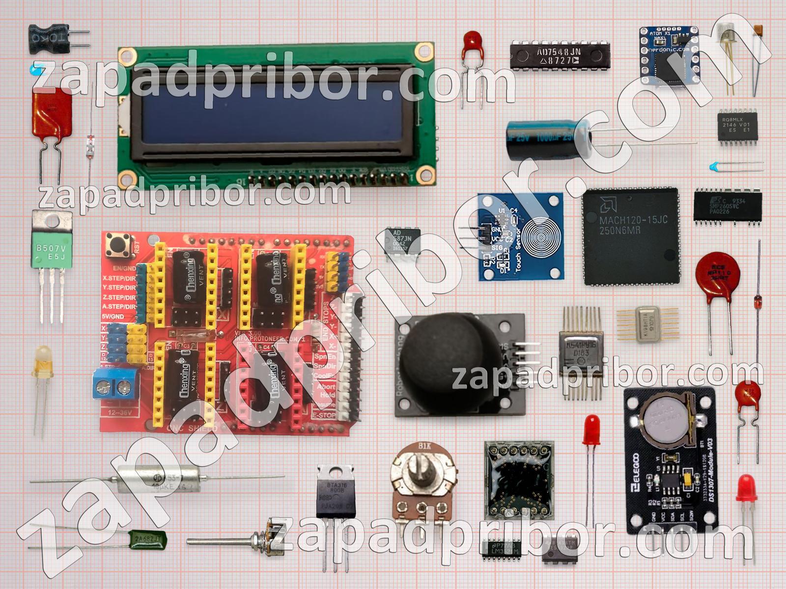 Кроме этих радиодеталей на нашем сайте вы сможете найти большой перечень компонентов. Осуществляйте поиск по основным типам радиодеталей таких как адаптер, микросхема, разъем, тумблер, колодки, резистор, индикатор, переключатель, фотодиод, транзистор, светодиод, тиристор, экран, реле, конденсатор, контакты, диодный мост, диод, соединитель, дроссель, преобразователь, трансформатор, датчик, кнопка, дисплей, усилитель, индуктивность, резонатор и другие.