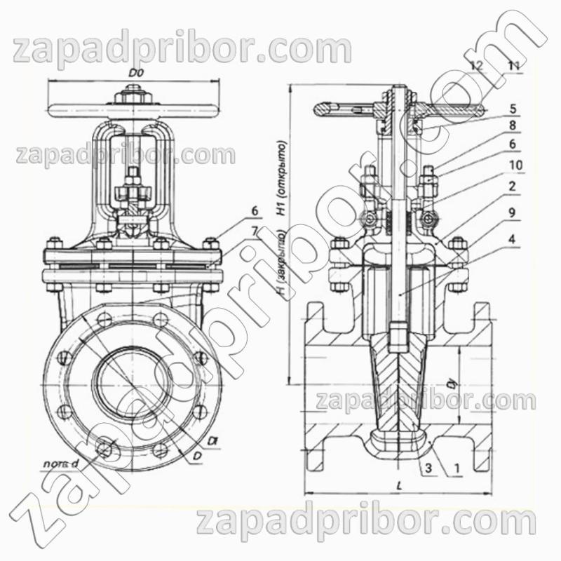 1. Корпус: сталь 25Л, 35Л; 2. Крышка: сталь 25Л, 35Л; 3. Клин (диски): сталь25Л,35Л с наплавкой, 20Х13;