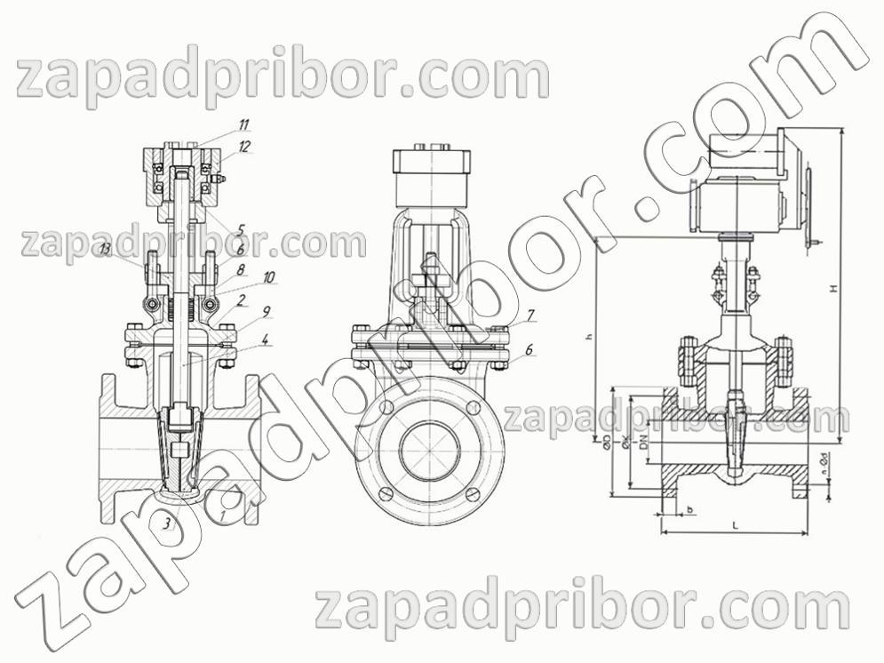 Задвижка 30с941нж Ду350 Ру16 под электропривод стальная фланцевая