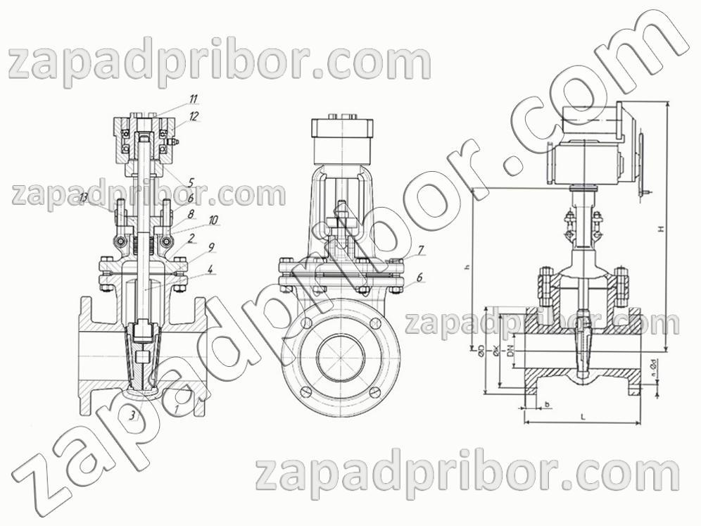 Схема чертеж задвижки 30с941нж: