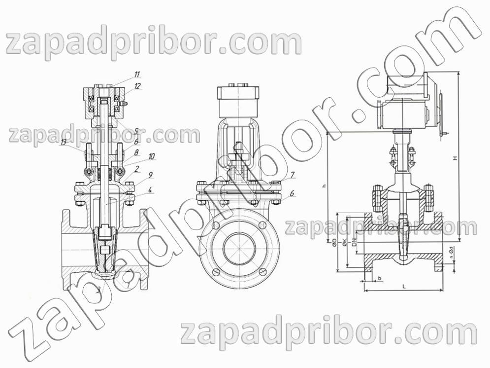 Задвижка 30с941нж Ду800 Ру16 под электропривод стальная фланцевая